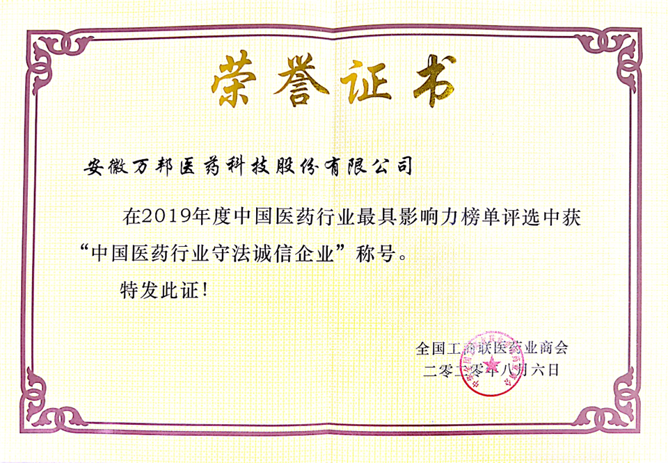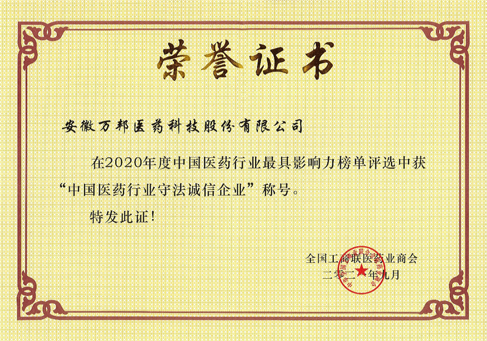 2020年中國醫(yī)藥行業(yè)守法誠信企業(yè)