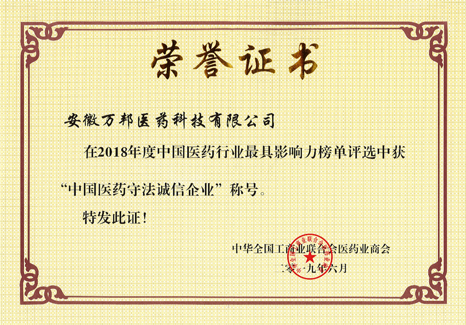 2018年中國醫(yī)藥守法誠信企業(yè)
