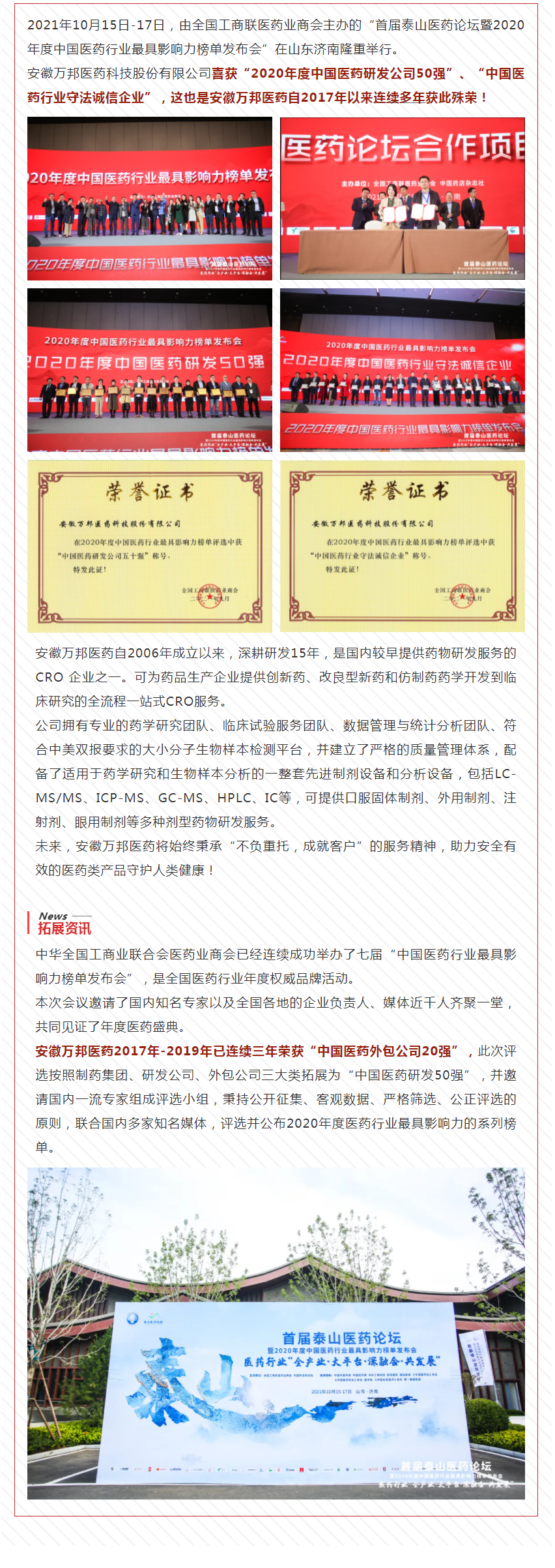 喜報|安徽萬邦醫(yī)藥再獲“中國醫(yī)藥研發(fā)50強(qiáng)”殊榮