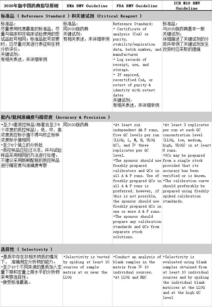 表一:主流生物分析方法驗(yàn)證指導(dǎo)原則對(duì)比