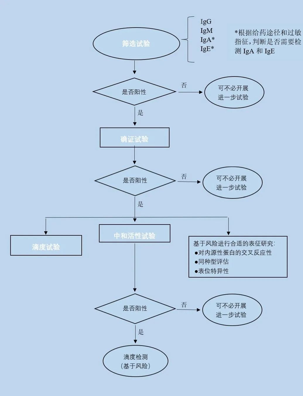 對于ADA的檢測,NMPA、FDA、EMA的檢測決策基本一致,三者均提倡多層級的評估策略:
