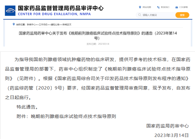 《晚期前列腺癌臨床試驗(yàn)終點(diǎn)技術(shù)指導(dǎo)原則》