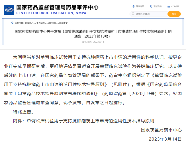 《單臂臨床試驗(yàn)用于支持抗腫瘤藥上市申請(qǐng)的適用性技術(shù)指導(dǎo)原則》