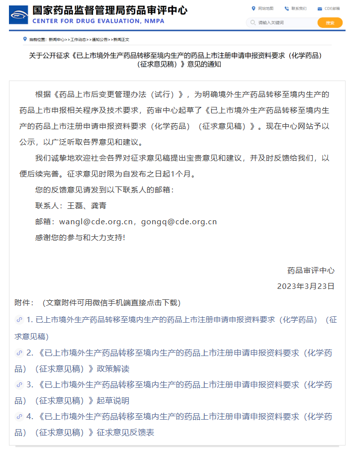 法律法規(guī)|CDE公開(kāi)征求《已上市境外生產(chǎn)藥品轉(zhuǎn)移至境內(nèi)生產(chǎn)的藥品上市注冊(cè)申請(qǐng)申報(bào)