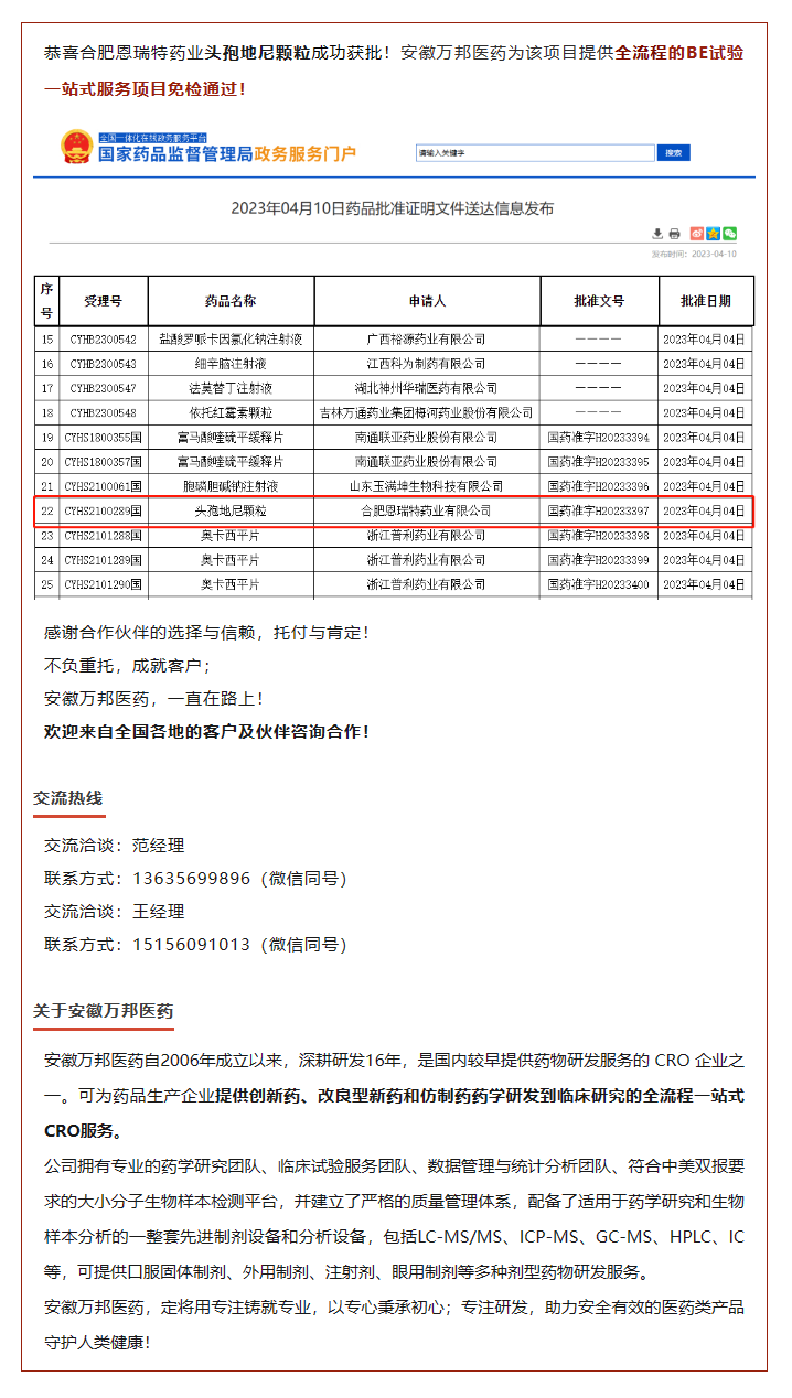 喜報(bào)|安徽萬邦醫(yī)藥助力合肥恩瑞特藥業(yè)頭孢地尼顆粒成功獲批!