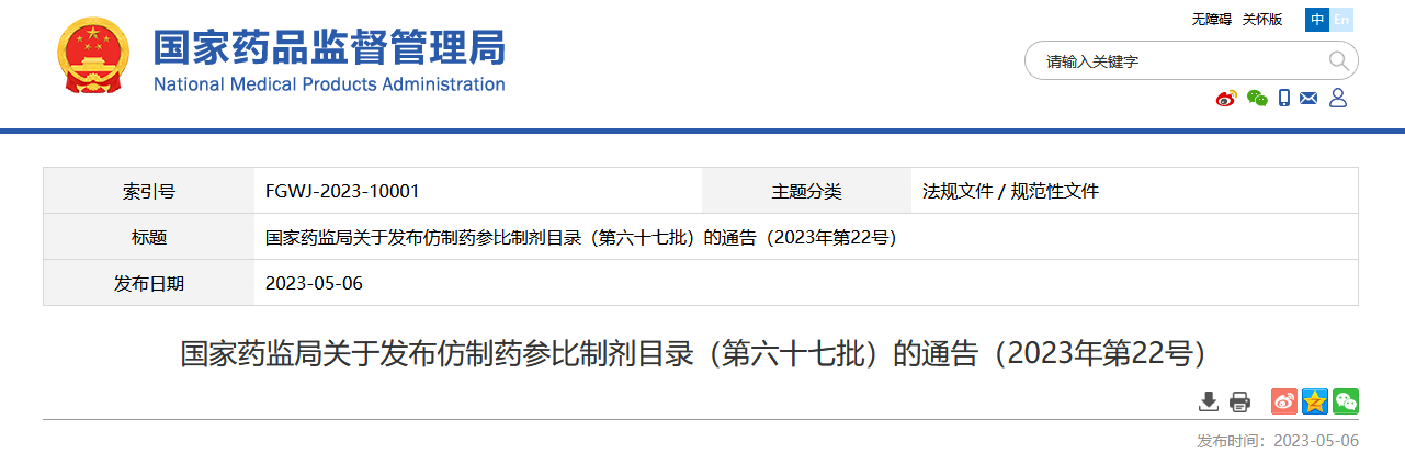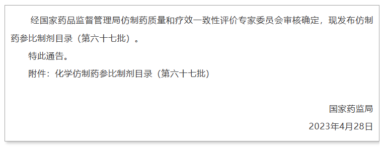 法律法規(guī)|NMPA關(guān)于發(fā)布仿制藥參比制劑目錄(第六十七批)的通告