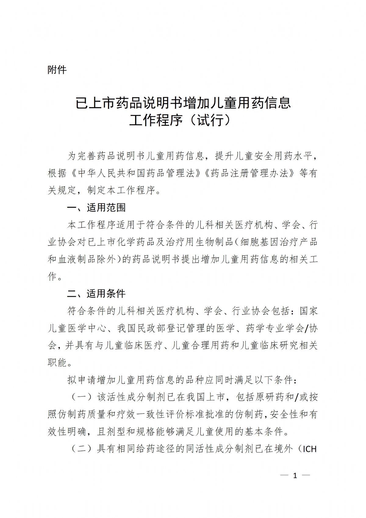 附件:已上市藥品說明書增加兒童用藥信息工作程序(試行)