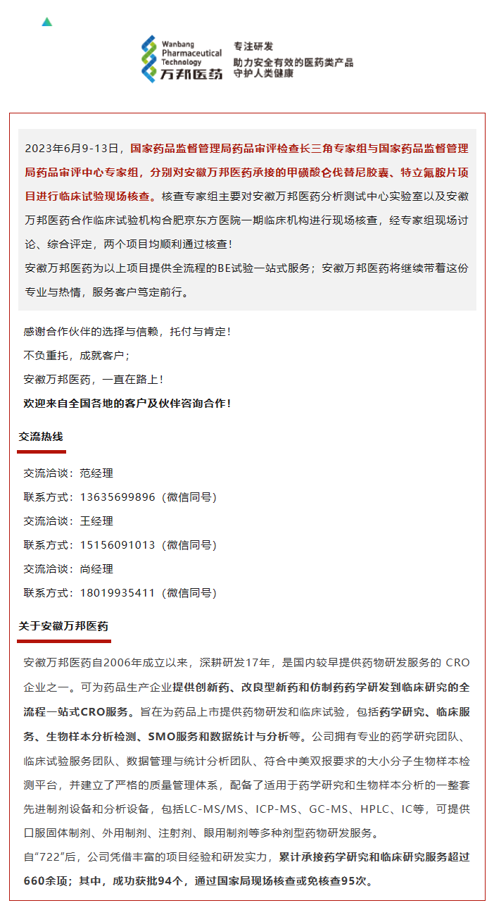 喜報|安徽萬邦醫(yī)藥6月助力11個項目獲CDE正式受理