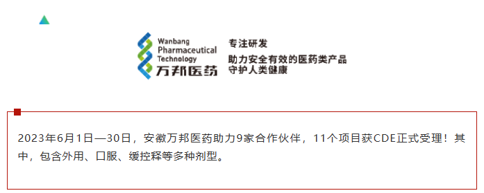 喜報|安徽萬邦醫(yī)藥6月助力11個項目獲CDE正式受理