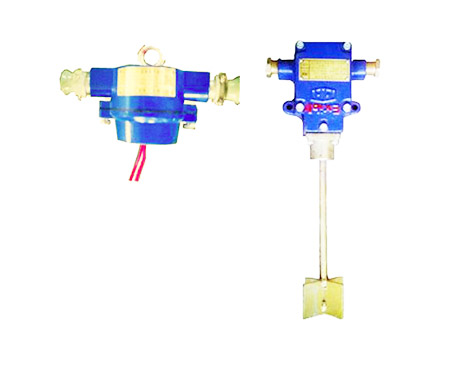 GUJ30(原型號(hào)KGU-1型)堆煤傳感器,是帶式運(yùn)輸機(jī)堆煤保護(hù)的信號(hào)采集單元。正常時(shí)煤位傳感器輸出端“堆煤”輸出高電平,當(dāng)煤位增高推移傳感器偏轉(zhuǎn)一定角度時(shí),其內(nèi)萬(wàn)向水銀開關(guān)接點(diǎn)導(dǎo)通, “堆煤”輸出低電平,“滿煤”指示燈亮,經(jīng)短暫延時(shí),主機(jī)執(zhí)行繼電器釋放,實(shí)現(xiàn)堆煤保護(hù),同時(shí)發(fā)出語(yǔ)言報(bào)警信號(hào)。電極式煤位傳感器原理相同,當(dāng)電極接觸煤堆時(shí),在煤電阻小于1.5M±500K的情況下,經(jīng)1-3秒延時(shí),實(shí)現(xiàn)故障停機(jī),保護(hù)皮帶。2 復(fù)位角度15°±3°